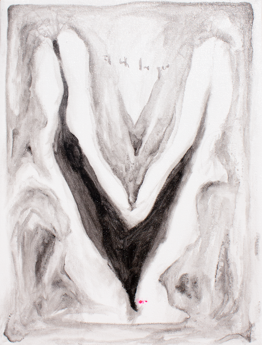 I think in the realm of art everyone experiences flux in a process of making, from changing mediums to making iterations of ideas you're obsessed with. For this tryptic I thought about the flux between abstract and figurative art and how the comparison of the two is a great place to explore what nonbinary looks like. Can someone explore gender fluidity through the fluid definitions in abstract art? What can you discover by the flux of an idea between styles and materials? I like to think of the smaller shapes I painted here as phantoms of the portrait in the middle, each different forms of each other.